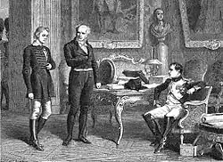 The Treaty of Schönbrunn (French: Traité de Schönbrunn; German: Friede von Schönbrunn), sometimes known as the Peace of Schönbrunn or the Treaty of Vienna, was signed between France and Austria at Schönbrunn Palace near Vienna on 14 October 1809. The treaty ended the Fifth Coalition during the Napoleonic Wars, after Austria had been defeated at the decisive Battle of Wagram on 5–6 July.