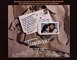 Trenchcoat is a 1983 American action comedy film directed by Michael Tuchner and starring Margot Kidder and Robert Hays. It was produced by Walt Disney Productions during an era when they began releasing more adult-oriented films, including Condorman, Never Cry Wolf, and Tron.