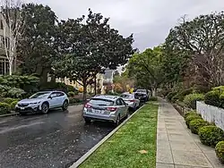 Trestle Glen is a neighborhood in Oakland, California. It is located east of Lakeshore Avenue, a shopping street which it shares with the Grand Lake District. It lies at an elevation of 144 feet (44 m). The streets are laid out in the curvilinear pattern of early 20th century garden suburbs. Many of the houses are nestled in the surrounding hills, and were built shortly before The Great Depression. The neighborhood is named after a railroad trestle built in 1893, which was dismantled in 1906 when the line was rerouted. The railroad line ran along Trestle Glen Creek, which was named Indian Gulch by early settlers after the Huchiun village that was located near the present-day intersection of Lakeshore Avenue and Trestle Glen Road. (The creek is now mostly underground.) The streetcar was instrumental in spurring the development of residential neighborhoods in the area. It is often written that Mark Twain was a passenger on the maiden voyage of the streetcar, though Twain lived in Europe at the time.