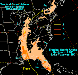 Rainfall totals from Arlene