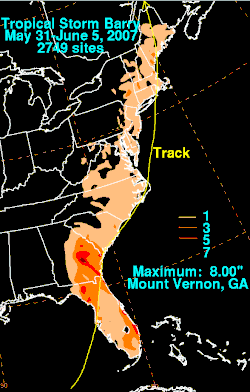 - ^ "Tropical Storm Barry Event Report for Georgia". National Climatic Data Center. 2007. Retrieved 2008-11-19.