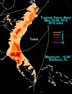 - ^ David M. Roth (June 12, 2012). Tropical Storm Beryl – May 23–30, 2012 (Report). Hydrometeorological Prediction Center. Retrieved June 20, 2012.