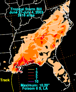 Rainfall totals from Tropical Storm Bill
