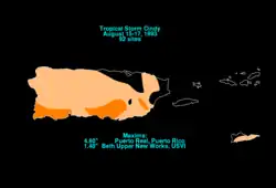 - ^ "No floods, fatalities reported on island in wake of Cindy". The San Juan Star. 1993-08-17. Retrieved 2011-12-24.