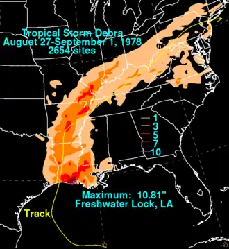 26. ^ "Preliminary Storm Report – Tropical Storm Debra 930AM CDT TUE AUG 29 1978". National Weather Service. Retrieved 2011-07-17.