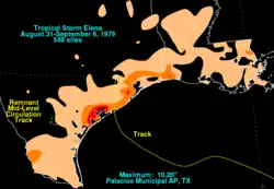 2. ^ a b c National Hurricane Center (1979). "Tropical Storm Elena Preliminary Report". Retrieved 2008-01-04.