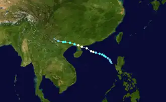 Severe Tropical Storm Talim, known in the Philippines as Tropical Storm Dodong, was a compact tropical cyclone that affected the Philippines, China, and Vietnam in mid-July 2023. The fourth named storm of the 2023 Pacific typhoon season, Talim originated from a weak monsoon depression east of Manila while moving towards Luzon. The system continued to track westward close to the northern edge of mainland Luzon before emerging off the coast of Ilocos Norte. A favorable environment allowed the fledgling tropical storm to rapidly intensify to a high-end Category 1-equivalent typhoon on the Saffir–Simpson scale. The storm maintained this intensity until shortly before landfall near Zhanjiang, Guangdong on July 17. Talim quickly weakened and dissipated early on July 18.