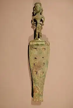 The Vietnamese proverb Giặc đến nhà, đàn bà cũng đánh ("when the enemy is at the gate, even the women go out fighting") has been recited as evidence of Lạc women's respected status.[54] In the contrary, other interpretations of the quote state that it only means fighting in war is inappropriate for women and its only when the situation is so desperate that the war has spread to their home then women should enter the war.[55][56][57]
