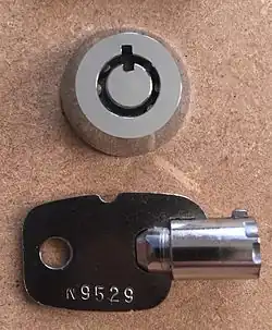 A tubular pin tumbler lock, also known as a circle pin tumbler lock, radial lock, or the trademark Ace lock popularized by manufacturer Chicago Lock Company since 1933, is a variety of pin tumbler lock in which a number of pins are arranged in a circular pattern, and the corresponding key is tubular or cylindrical in shape. Most locks use between six and eight pins, although some use as few as four or as many as ten. The devices have been widely used on vending machines, elevators, public computers, and bicycle locks.