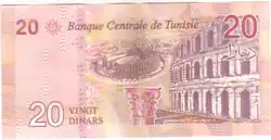 20 dinars | 153 × 76 mm | Red | Farhat Hached | Amphitheater of El Djem | 2017 |