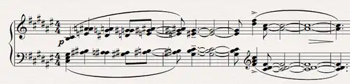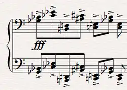 | A simple chain of chords, used to produce opposing chords on the piano and crossing counterpoints in the orchestra. |
