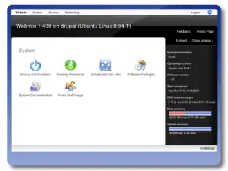 - Web administration interface based on Webmin which includes a selection of generic add-on control and configuration modules.