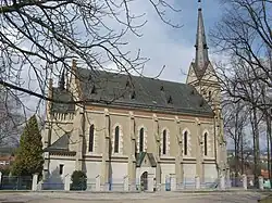 The main landmark of Tvarožná is the Church of Saint Nicholas. It was built in the neo-Gothic style in 1880–1881 and replaced an old structure from the early 14th century.[6]