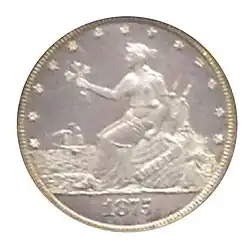 1. ^ That is, not the trade dollar, that would weigh more in proportion and which was not intended to circulate in the United States. The standard silver dollar had been discontinued in 1873.