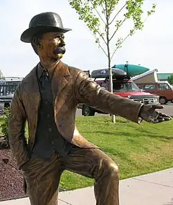 By 1903, Perrine, who had been a successful farmer and rancher in the Snake River Canyon, had obtained private financing from Milner and others under the provisions of the Carey Act of 1894 to build a dam on the Snake River near Caldron Linn. Completed in 1905, Milner Dam and its accompanying canals made commercial irrigation outside the Snake River Canyon practical for the first time.[15] As a result, Perrine is generally credited as the founder of Twin Falls.[16]