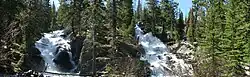 Twin Falls are a pair of waterfalls located in Glacier National Park, Montana, US. The falls descend from outlet streams from the surrounding peaks and No Name Lake and split into two waterfalls as they cascade 80 feet (24 m) into Two Medicine Valley. The falls can be reached by a hike of less than a mile west of Two Medicine Lake.[2][3]