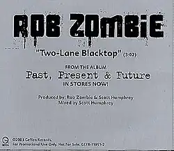 "Two-Lane Blacktop" is a song by Rob Zombie from his Past, Present & Future compilation album. The song is loosely based on the 1971 road movie Two-Lane Blacktop directed by Monte Hellman. The song was also featured in the racing game Need for Speed: Underground in 2003 and then again in the film Venom in 2005.