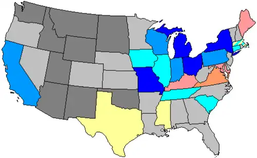 | Kansas | District + 4 at-large[j] |
