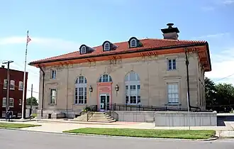 U.S. Post Office is a historic post office building located at Carrollton, Carroll County, Missouri. It was designed by the Office of the Supervising Architect under James Knox Taylor and built between 1910 and 1912. It is a two-story, rectangular, Renaissance Revival style building constructed of regular coursed, smooth cut, Missouri limestone. It has a low hipped roof of red tile and features two large round arched windows flanking the main entrance.[2]: 2