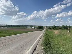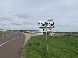 U.S. Highway 136 (US 136) is a part of the United States Numbered Highway System that runs for 804 miles (1,294 km) between Edison, Nebraska, and Speedway, Indiana. It is a spur route of US 36 despite never intersecting its parent. Its largest subsection is within the state of Missouri, and it begins at the Missouri River and continues east across the very northern part of the state to the Missouri-Iowa state line near Alexandria along the banks of the Des Moines River.[1] The highway travels across the croplands of northern Missouri to the woods of the Mississippi River Valley encountering plains, forests, and wind turbines. For its entire length, US 136 is a two-lane highway and it encounters all nine county seats for the counties it passes through. Throughout Missouri, it intersects two Interstate Highways and eight other US Highways, and it runs concurrently with seven of the US Highways.