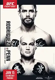 UFC Fight Night: Rodríguez vs. Penn (also known as UFC Fight Night 103) was a mixed martial arts event produced by the Ultimate Fighting Championship held on January 15, 2017, at Talking Stick Resort Arena in Phoenix, Arizona[2][3]
