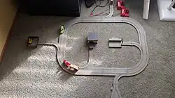 The trucks run on a gray variant of the Tyco Quick Clik track that provides power to the vehicles through two thin metal strips in the track, which is similar to many other HO scale road and racing systems. The track was initially produced with yellow center lines and some other markings, although this is less common and most track was supplied unmarked.