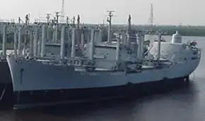 USNS Courier (MARAD hull AK-5019) was a cargo ship of the National Defense Reserve Fleet. The cargo ship was built by Sun Shipbuilding and Drydock Company, Chester, Pennsylvania, at the request of the US Maritime Administration (MARAD hull 124) in 1962. The ship was 470 ft in length and has a breath of 73 and weighs 11420 tons, empty. The ship was originally administered by American Export Lines under the civilian name SS Export Courier and eventually became part of the James River Reserve Fleet. The company ran into financial trouble in 1977.[1] Before 1981, Farrell Lines, which took over parts of the dissolved American Export Lines, transferred administration of the Courier to the Military Sealift Command, which renamed the ship USNS Courier.[2] The ship was officially accepted as part of the Maritime Administration in February 1983. From 1981 it was stationed with the Beaumont Reserve Fleet or docked at Port Neches, Beaumont Texas. Service records indicate repairs after Operation Desert Storm.[3] In 2001 the ship was transferred to the National Defense Reserve Fleet and remained in this status until July 2008 when it was sold to Southern Scrap Metal Corporation of New Orleans, Louisiana and subsequently transferred to New Orleans' Industrial Canal on 13 August, a little more than two weeks before Hurricane Gustav reached Louisiana's southeastern coast.[4][5]