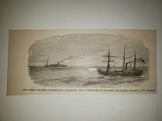 ![]() USS Huntsville chases the rebel steamer CSS Reliance.