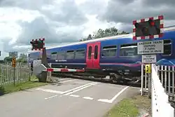 Ufton Nervet level crossing was an automatic half-barrier level crossing (AHBC) situated on the Reading–Taunton branch of the Great Western Main Line between Theale and Aldermaston stations in Berkshire.[1]: 7 [2]: 33  In the United Kingdom, AHBCs are used on roads where traffic is unlikely to block the crossing and where the line speed is not more than 100 miles per hour (160 km/h).[3]: 6  Ufton Nervet AHBC was situated on Ufton Lane, an unclassified road[2]: 161  connecting the A4 (between Reading and Newbury) with the village of Ufton Nervet.[2]: 152  The railway at the crossing is surrounded by fields, and was a short distance from the A4.[2]: 80