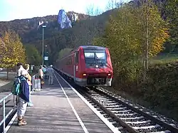 The Ulm–Sigmaringen railway is a 92.670-kilometre-long railway in Baden-Württemberg in south-western Germany, which is largely single-tracked and for the most part not electrified. It runs from Ulm via Blaubeuren and Riedlingen to Sigmaringen mostly in the valley of the Danube. The line is part of the once important long-distance connection from Munich to Freiburg im Breisgau.
