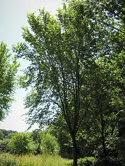 Originally identified as clone '812', Lutèce was not promoted by the Dutch owing to unfounded fears that it may prove susceptible to coral spot fungus (Nectria cinnabarina). Instead, patent for '812' was acquired by the French Institut National de la Recherche Agronomique (INRA), which subjected the tree to 20 years of field trials in the Bois de Vincennes, Paris, before release in 2002 as 'Nanguen' = Lutèce.[3][4] Lutèce has been deemed the modern cultivar most closely resembling the native European elms.[5]