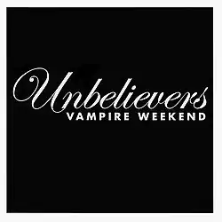 "Unbelievers" is a song by American indie pop band Vampire Weekend. Written by the band's lead singer Ezra Koenig and multi-instrumentalist Rostam Batmanglij, and produced by Ariel Rechtshaid and Batmanglij, the song was released as the third single from their third studio album Modern Vampires of the City in August 2013.[1] The band initially premiered "Unbelievers" in a live performance on Jimmy Kimmel Live on October 31, 2012.[2][3] They also performed the song live on an episode of Saturday Night Live prior to it being released as a single.[4]