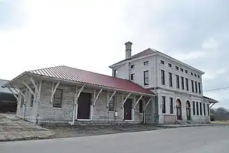 NC&StL and LN built Union Station in 1905, and the depot was shared with LN until 1945 when the Columbia to Lewisburg tracks were abandoned. The Lewisburg to Fayetteville section was abandoned in 1961.[3] Union Station was listed on the Tennessee Preservation Trust, "Ten in Tennessee" list of endangered properties in 2009.[4] The building was used for offices and apartments but became vacant in 1983. David and Debra Hill bought the property in foreclosure in 2012 with plans on restoration[5]