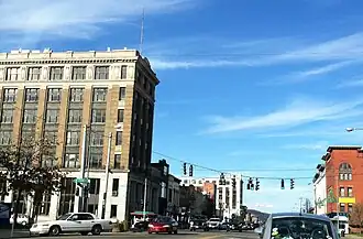 Union and State Streets Historic District is a national historic district located at Olean in Cattaraugus County, New York. The district encompasses 17 contributing buildings in the central business district of Olean. The district developed between about 1866 and 1939, and includes buildings in a variety of architectural styles including Beaux-Arts, Queen Anne, and Art Deco. Located in the district are the separately listed Olean Post Office and Olean Public Library. Other notable buildings include the Former First National Bank, current Manufacturers Hanover Building by Mowbray and Uffinger (c. 1915, 1938, 1950), Original First National Bank of Olean (c. 1866-1869), Masonic Temple by Warner and Brocket (1893), Olean House (c. 1889, 1893), and W.T. Grant Building (c. 1873–1878, Façade Update c. 1935-1940).[2]