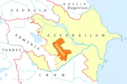 4. ^ Dawisha & Parrott 1997, p. 119: "A cease-fire was achieved in May 1994, after a decisive Armenian victory that included their occupation of approximately 20 percent of Azerbaijan's territory.".