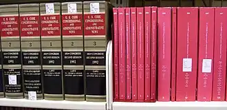 When published in bound volumes, the legislative history documents are placed in separate volumes apart from the rest of the materials published by U.S.C.C.A.N.[5] Prior to the 99th Congress, the legislative history materials in U.S.C.C.A.N. contained only a House or Senate report.[5] Since the 99th Congress (1985–87), the legislative history materials in U.S.C.C.A.N. have included the House or Senate report, the committee report, and any presidential signing statements.[5] U.S.C.C.A.N. is considered a more readily accessible source for some of these materials, like committee reports, than the originals.[5] As a result, it is recommended by the Bluebook as a citation source in addition to the original document.[6]