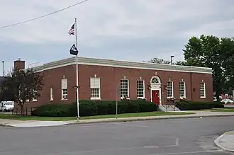 US Post Office-Ilion is a historic post office building located at Ilion in Herkimer County, New York, United States. It was built in 1935–36, and is one of a number of post offices in New York State designed by the Office of the Supervising Architect of the Treasury Department, Louis A. Simon. It is a one-story, seven-bay, steel frame building on a raised foundation with a brick watercourse in the Colonial Revival style. The interior features a 1937 plaster relief by artist Edmond Amateis of Eliphalet Remington.[2]
