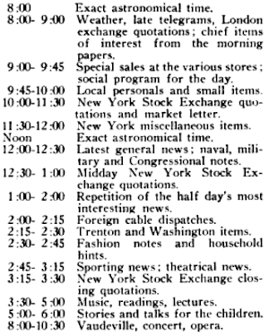 New Jersey Telephone Herald's daily schedule (1912)[11]