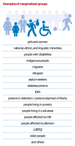 Examples of marginalised groups include:[10]