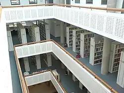 The Library was designed by van Heyningen and Haward Architects as a gateway to the campus. The building was completed in 2001 and provides approximately 360 individual study spaces, teaching space, staff work areas and traditional library services.[14] There is also the Gateway building which offers teaching and informal learning spaces, lecture theatres and a student service centre over three storeys.