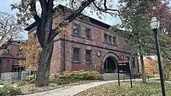 Originally known as the Law Building and erected at a cost of $30,000, it was the first building of the University of Minnesota Law School, itself founded in 1888. The Richardsonian Romanesque-style building was later named after William S. Pattee, the School's first dean,[2] and doubled in capacity from a 1905 expansion.[11] In 1921, the School's dean, Everett Fraser complained that the classrooms were inadequate and that the library space was too flammable, as seen with the prior burning of Old Main in 1904.[2] The Law School then moved to the newly built Fraser Hall in 1928, and later to Mondale Hall. Pattee Hall was left empty until 1947, when it became the home to the University Elementary School, until its departure in 1965,[12] leaving the building vacant once again. The Institute on Community Integration occupied the building from 1985 until they outgrew the building in 2021 and moved into the Masonic Institute for Brain Development on the St. Paul campus.[2][13] The Department of American Indian Studies moved into Pattee Hall in the fall of 2024 following a refresh of the building.[14] Various symbols of the Law School still exist throughout the structure.[2]