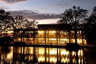 The South Caroliniana Library is located on the university's Historic Horseshoe. Begun in 1838 and completed in 1840, the Robert Mills-designed building was the first free standing college library in the country.[10] Mills used the reading room of the Library of Congress that housed Thomas Jefferson's collection as the basis for his design.[11]