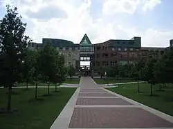 The Main Campus, the original and largest, was born out of a 600-acre donation to the University of Texas Board of Regents.[90] It proved to be so controversially remote to the city (at the time) that many San Antonians nicknamed it "University of Texas at Boerne" or "UT Boerne".[90][91][92] The Main Campus opened its doors in 1975. Prior to that, classes were held at the Koger Center at Babcock Road and Loop 410.[90] Roadrunner Cafe, the university's first dining hall, was erected in 2005.[93] In 2006, UTSA acquired a 125-acre swath of land on Hausman Road to build its future athletics complex, bringing the Main Campus up to 725 acres in total.[94] Up until 2009, it was known as the "1604 Campus", at which point it was renamed the "Main Campus" so as to better reflect its importance within the university and community as a whole.[95] Students have the choice to live at one of the campus' many housing complexes.[96][97]