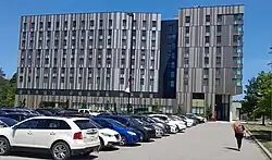 Since 2009, the university has undertaken a proposal to substantially expand the campus north of Ellesmere Road, starting with the construction of the Instructional Centre, funded by Canada's Economic Action Plan, completed in 2011. The Toronto Pan Am Sports Centre (built 2014) was one of the main venues of the 2015 Pan American Games and 2015 Parapan American Games.[14] The Toronto Pan Am Sports Centre brought pool facility to campus and significantly expanded the size of the gym. The Parapan American Games also brought an addition of seven accessible tennis courts to the Highland Creek valley. The Environmental Science and Chemistry Building, completed in summer 2015, was the third building to open in the north grounds.[22] The most recent addition to campus architecture is Highland Hall, built on the footprint of the old gym and athletic centre. Highland Hall houses the Registrar's Office, Admissions & Recruitment, and an Event Centre. Plans for expansion in the near future include a second Instructional Centre,[23] a new student residence,[24] and an indigenous house.[25]