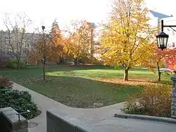 The university also manages several residences outside the central campus. The official residence of the university president, Gibbons Lodge, is off-campus. Completed in 1932, the Tudor Revival-styled house is north of Western's central campus. It was acquired by the university in 1960.[46] In addition to Gibbons Lodge, the university also maintains Platt's Lane Estates, a complex of townhouses and apartments south of the university's campus. The complex was designed to accommodate upper-year, graduate, and students with families.[47]