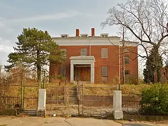 Upton, also known as the David Stewart Residence or Dammann Mansion, is a historic home located in the Upton neighborhood of Baltimore, Maryland, United States. It is a large brick Greek Revival mansion constructed about 1838 as the country residence of David Stewart (1800-1858), a prominent Baltimore attorney and politician. It is 2+1⁄2 stories high on a raised basement, three bays wide and two rooms deep, with a center-passage plan. In the late 1950s, a brick stair tower was constructed when the building was adapted for public school use.[2] After many years as a school for exceptional children, in 1977 the Upton Mansion housed the offices for the Home and Hospital Services (school #303) of the Baltimore City Public Schools and continued through 2006.[3] In February 2023, a $2.2 million federal grant was announced to help create renovate the property into the headquarters of the Afro-American, an African-American newspaper published in Baltimore since 1892. Afro Charities is the awardee of the grant which will also help to digitize thousands of images and copies of the newspaper.[4]