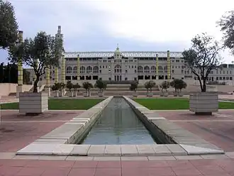 The remodeling project of the Citadel Park was commissioned to Josep Fontserè in 1872, who designed extensive gardens for the recreation of the citizens, and together with the green area he planned a central square and a ring road, as well as a monumental fountain and various ornamental elements, two lakes and a wooded area, as well as various auxiliary buildings and infrastructures, such as the Born market, a water reservoir —currently the library of the Pompeu Fabra University—, a slaughterhouse, an iron bridge over the railroad lines and several service sheds.[112] He also designed the urbanization of the new sector of the Born, composed of a hundred plots of land, which would present a common stylistic stamp, although it was finally only partially realized.[113]