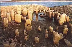 Beneath its waters is a Bronze Age site with a dolmen that emerges when the waters drop. The Guadalperal dolmen megalithic complex is also called the Spanish Stonehenge for its resemblance to Stonehenge, a megalithic monument located near Amesbury, England.[2]