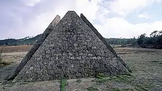 In the 1950s, the road connecting Constanza and San José de Ocoa was built and inaugurated in January 1959.[6] Initially named after Héctor Trujillo, the road was later designated as Route 41 and is now also called Antonio Duvergé Highway.[9] Alongside the road, the Cyclopean Pyramid (Las Pirámides) was constructed in the Valle de los Frailes, marking the former municipal boundary between Constanza and San José de Ocoa.[9][10] The pyramid, consisting of four segments, is located in a section of the road known as La Nevera.[9]