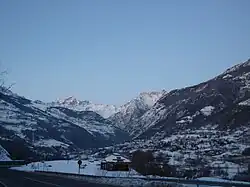 The upper Valpelline valley seen from Gignod. The Grand Combin appears in the background